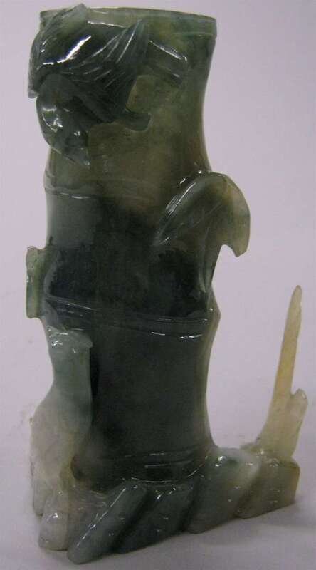 The tall cylindrical vase carved in the manner of a bamboo branch.