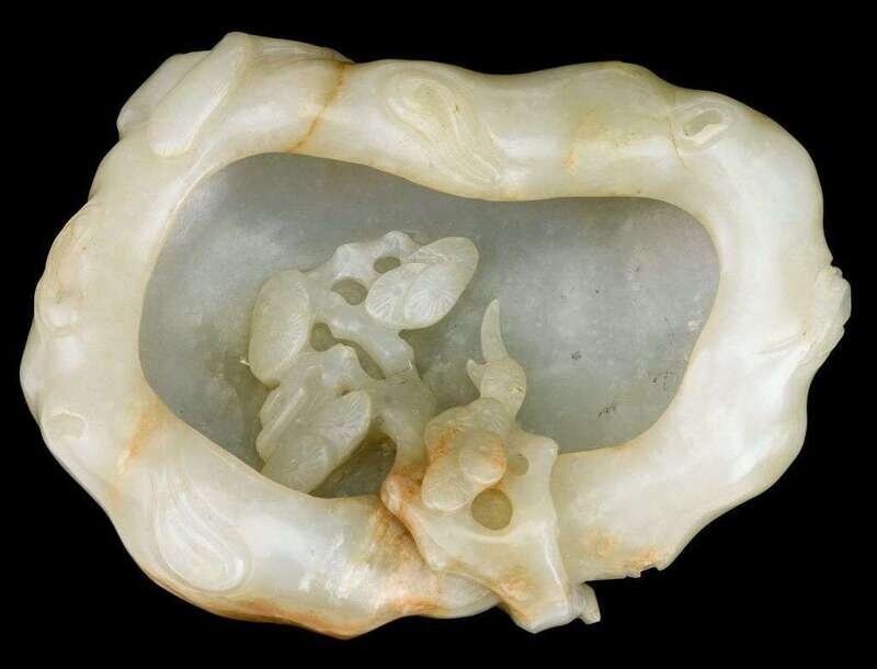 Chinese celadon and russet jade brush washer qing dynasty