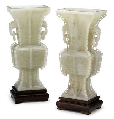 Pair of Chinese white jade archaistic gu vases 19/20th century