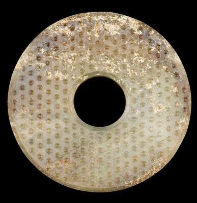 Of typical form, carved with regular grain pattern and beveled edges to center and circumference.