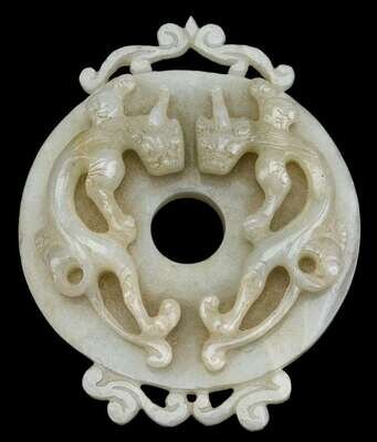 Large Chinese light celadon jade qilong bi disk 19th century