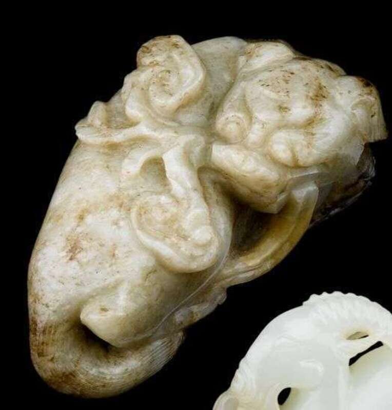 Carved in the Ming style, depicting a recumbent buddhistic lion holding a lingzhi branch in its mouth.