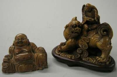 Comprising a seated Lohan grouping, together with a seated Budai.