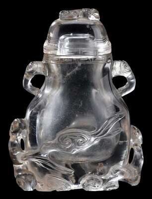 Flattened ovoid form with lingzhi handles, openworked with clouds and birds around exterior.