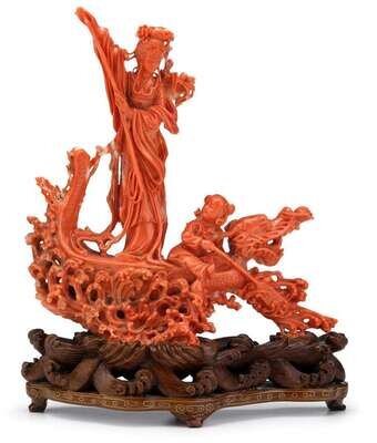 Chinese carved coral figural grouping late 19th century