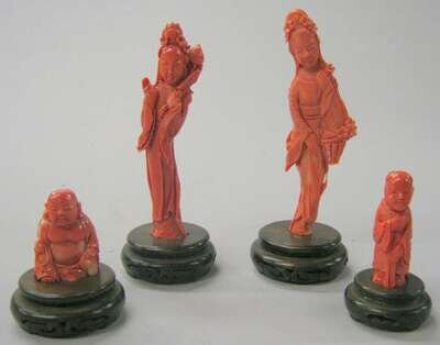 Four Chinese coral carvings