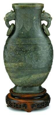 Large Chinese mottled green jade archaistic vase 18th / 19th century