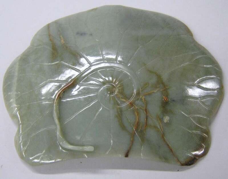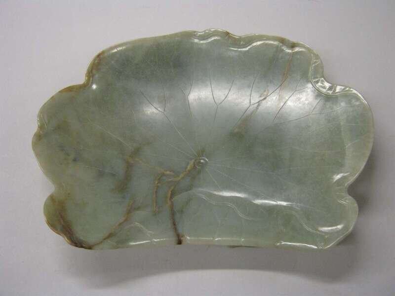 Large Chinese celadon jade lotus-leaf form dish qing dynasty