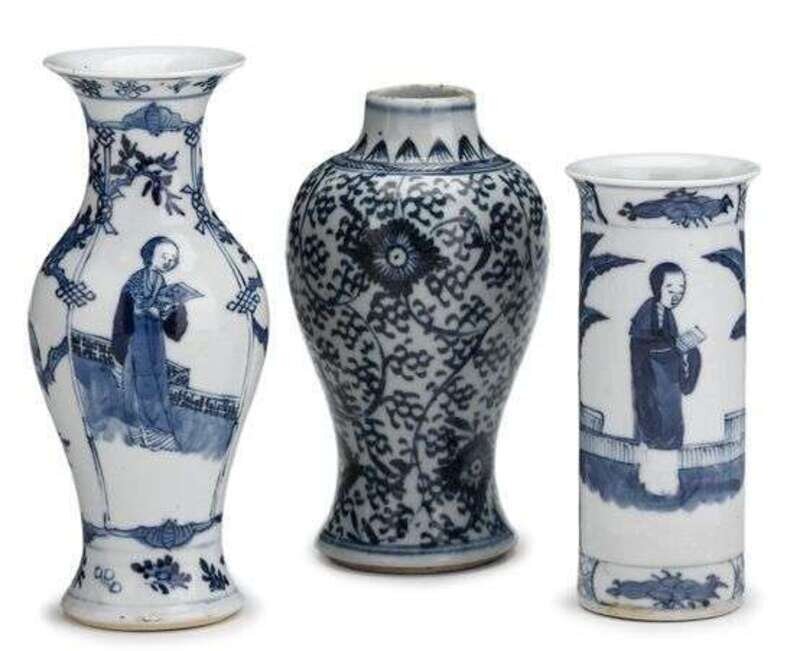 Three Chinese blue and white porcelain vases 19th century