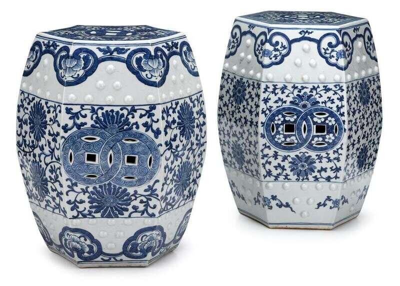 Pair of Chinese blue and white octagonal garden seats late 19th century