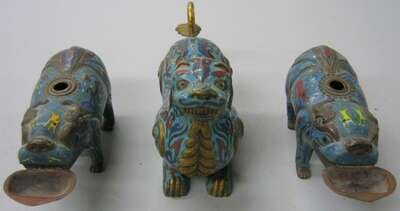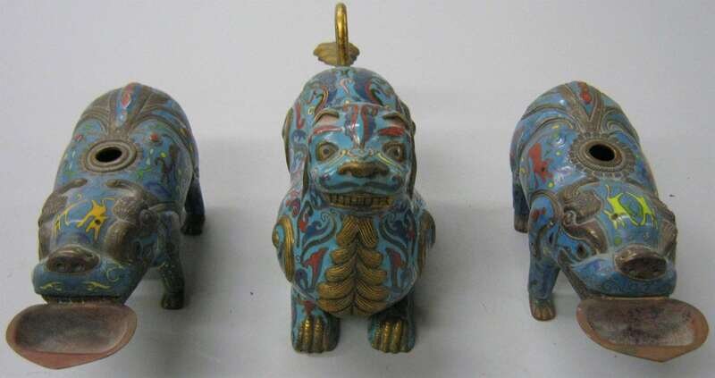 Including a pair of beast form censers biting a tray in their mouth, and another with cover and gilding around tail and hair.
