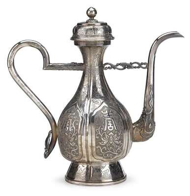 Fine and heavy Chinese silver wine ewer impressed mark and inscription to base