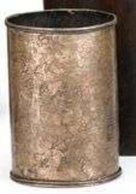 Beaded edge around mouth rim and base, incised throughout body with birds among flowers stylized decoration.