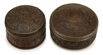 Two pewter and coconut shell boxes and covers 19th century