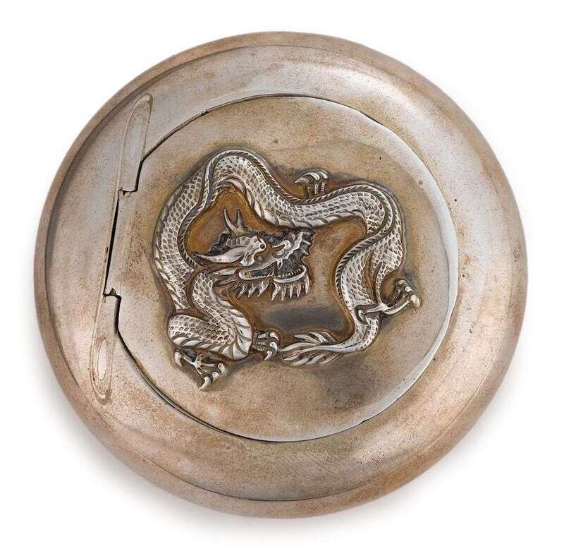 Of circular form, decorated with a dragon.