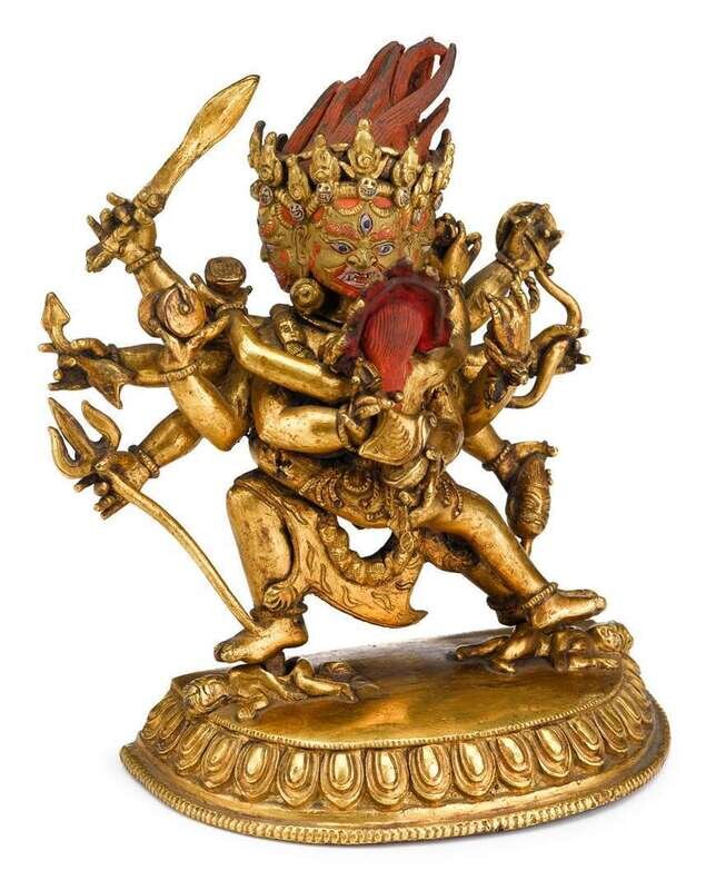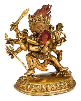 Sino-Tibetan gilt and polychromed bronze tantric grouping 19th century