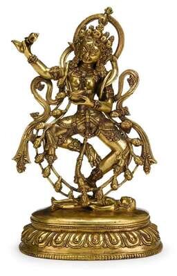Unusual Sino-Tibetan gilt bronze Vajrapani 18/19th century