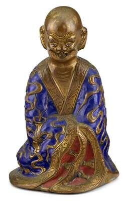 Chinese enameled copper Damo figure 19th century