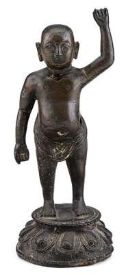 Chinese bronze standing infant Buddha 17th century