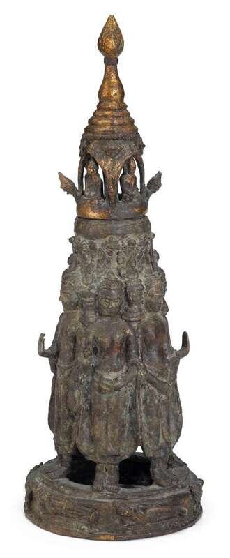 Large thai partially gilded bronze reliquary 16/17th century