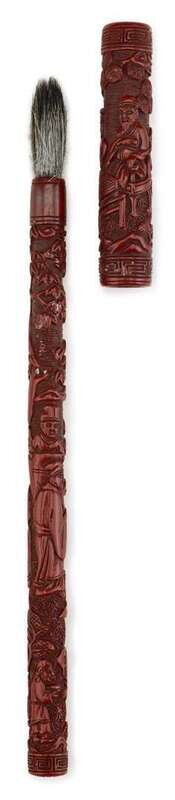 Fine and rare Chinese carved cinnabar brush 17th century
