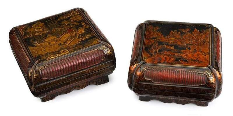 Pair of Chinese red lacquer wood boxes ming dynasty