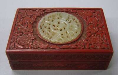 Chinese cinnabar lacquer box with inset jade plaque qing dynasty