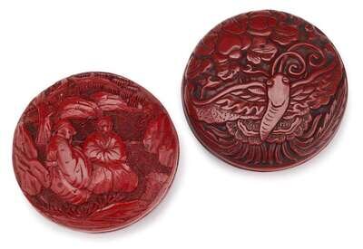 Two Chinese carved cinnabar lacquer paste boxes 18/19th century