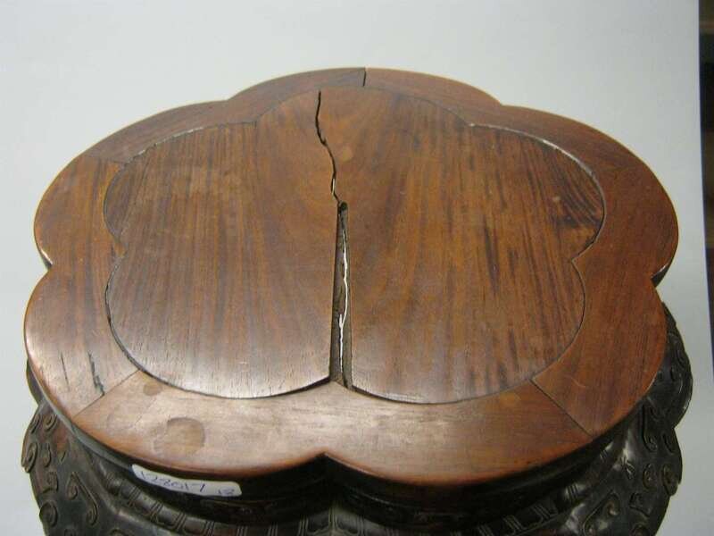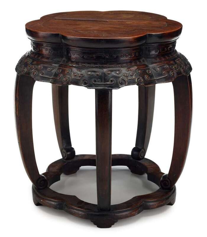 The floral-shaped lobed top above a carved apron over five gently-bowed tapering legs united by a conforming stretcher.