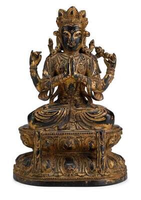 Sino-Tibetan gilt wood figure of a multi-armed deity qing dynasty or earlier