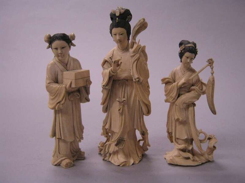Three Chinese carved ivory female figures early 20th century