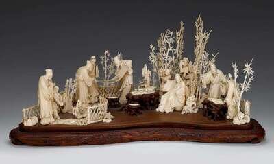 Chinese elephant ivory garden scene carving