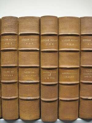 Poe, Edgar Allan. The Tales and Poems. Phila.: George Barrie & Son, [c1900]. #82/100. 4to, contemp. 3/4 crushed green morocco & marbled bds, gilt, t.e.g., other edges untrimmed, raised bands; fading to green, occasionally slightly scuffed. With etched port. in 2 states ( 1 color), 20 etched & 5 photogravure plates. Crisp & clean. With 1st book form appearance of "Journal of Julius Rodman." See BAL 16166.