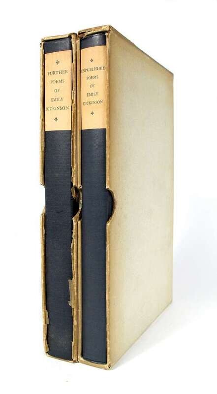 Dickinson, Emily: Further Poems of Emily Dickinson. Boston: Little, Brown, 1929. 1st ed., #376/465. Tall 8vo, ori. two-tone blue-green cloth, t.e.g., other edges untrimmed, paper spine label. Orig. glassine torn & chipped, orig. slipcase with paper label facs. BAL 4683. * Unpublished Poems of Emily Dickinson. Boston: Little, Brown, 1935. 1st ed., #92/525. Tall 8vo, orig. two-tone cloth - blue & green cloth, t.e.g., other edges untrimmed, paper spine label, slipcase. Facs. BAL 4688. Attractive copies.