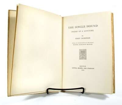Dickinson, Emily. The Single Hound. Poems of Life Time. Boston: Little, Brown, 1914. 1st ed. Introduction by Martha Bianchi. 8vo, orig. pink-cloth backed white bds, untrimmed egdes; light edge wear, occasionally slightly scuffed. Complete with terminal blank. Sound, generally attractive.