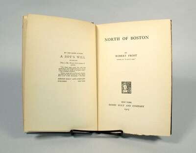 Frost, Robert. North of Boston. New York: Henry Holt, 1915. 6th ptg. 12mo, orig. blue cloth, gilt; light wear. Signed by Robert Frost at head of front free endpaper recto.