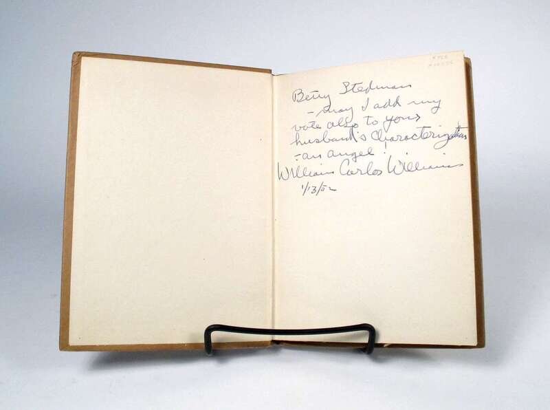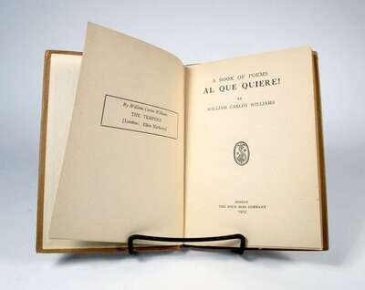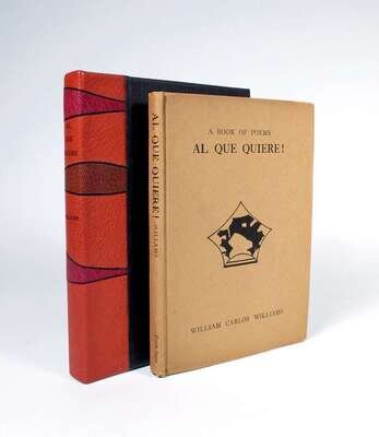 Williams, William Carlos. Al Que Quiere! A Book of Poems.Boston: Four Seas Company, 1917. 1st ed., presumed 2nd impress. 12mo, orig tan bds. Presentation copy inscribed to Betty Stedman, dated, "1/13/52," & signed by William Carlos Williams on front free endpaper recto. Fine copy in custom morocco & cloth slipcase.