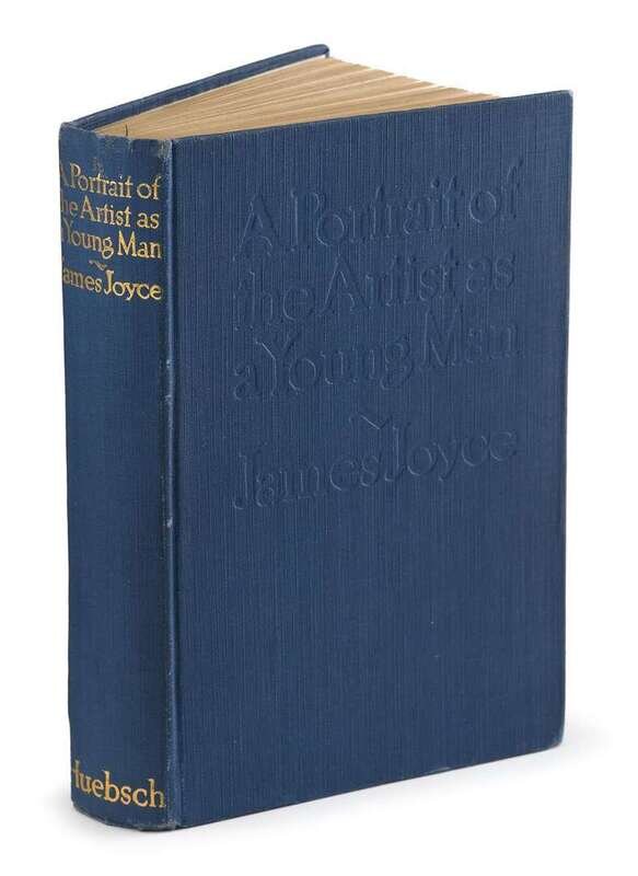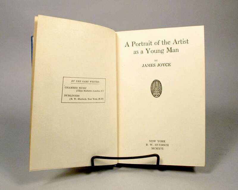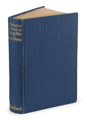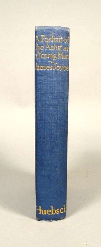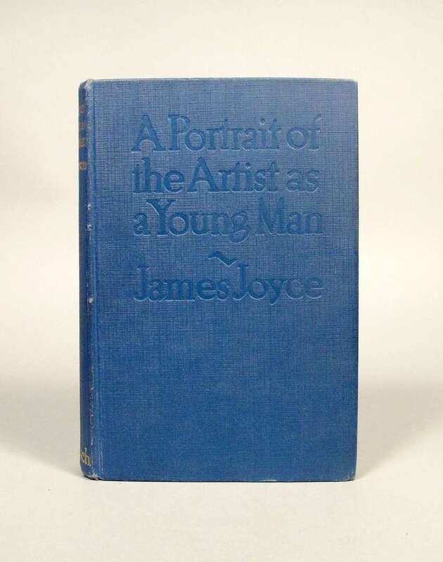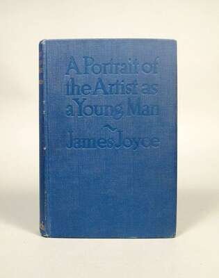 Joyce, James. A Portrait of the Artist as a Young Man. New York: B.W. Huebsch, 1916. 1st ed. 12mo, orig. blind stamped blue cloth, gilt-lettered spine; very slightly cocked, corners & spine ends a little scuffed, joints occasionally slightly scuffed, joints occasionally slightly scuffed, top edge slightly dusty. Gilt on spine bright in near fine state of presentation. Internally clean, book plate on front paste down.