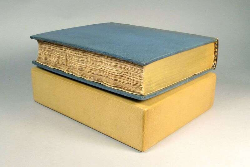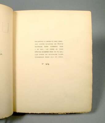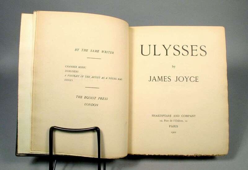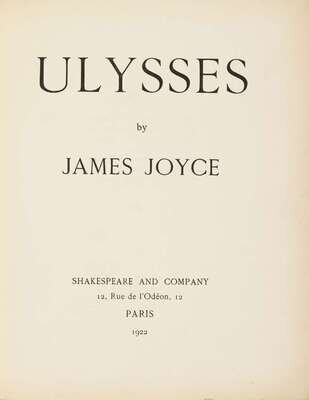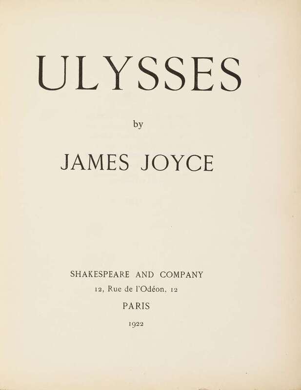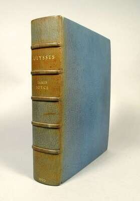 Joyce, James. Ulysses. Paris: Shakespeare and Company, 1922. 1st ed. #534/750 (of 1,000). 4to, later full green-blue crushed niger morocco, t.e.g., other edges untrimmed, gilt-lettered spine, raised bands, orig. blue back wrapper preserved. (Without front wrapper & spine panel.), by Sangorski & Sutcliffe. Internally clean & attractive, very minor creasing. In custom cloth slip case.