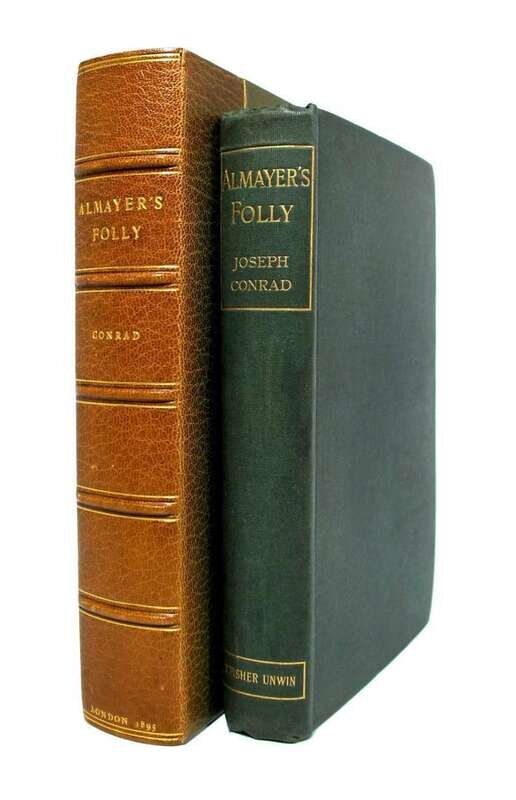 Conrad, Joseph. Almayer's Folly. London: T. Fisher Unwin, 1895. 1st ed., 1st issue. 8vo, orig. green cloth, gilt-lettered spine, t.e.g., other edges rough trimmed; light edge wear. Attractive copy in custom green morocco & cloth case. With "e" lacking from generosity on p110.