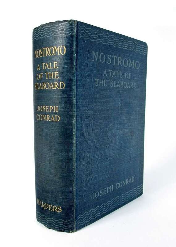 Conrad, Joseph. Nostromo. A Tale of the Seabold. London: Harper, 1904. 1st ed. 8vo, orig. light blue cloth, gilt-lettered spine; slightly scuffed, light edge wear. Conrad's name in another hand on front free endpaper recto. Sound, attractive copy.