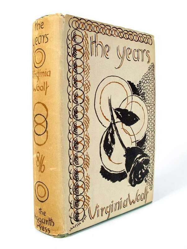 Woolf, Virgnia. The Years. London: Hogarth Press, 1937. 1st ed. 8vo, orig. pale jade cloth, gilt-lettered spine, top edge stained grey, other edges untrimmed; light edge wear, slightly scuffed, a little dusty, d/j (minor chipping to edges - no loss to design elements, spine panel starting to darken.) D/j design by Vanessa Bell. Occasional minor discoloration to endpaper. Complete with 1/2 title.