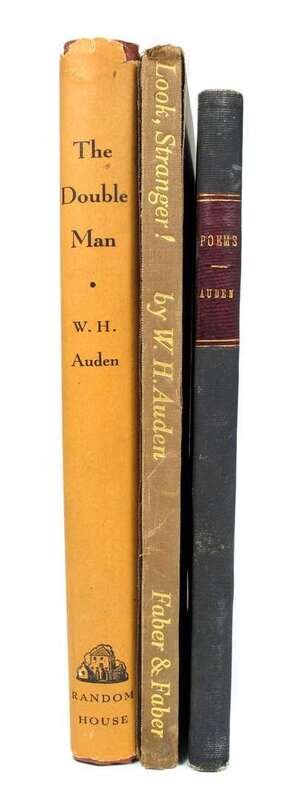 Auden, W.H: Poems. L: Faber & Faber, (1930). Sq. 4to, later blue cloth, orig.blue wrappers bound in. Nescient chip at center fore edge of front wrapper. Untrimmed. Clean & attractive. Auden's 1st reg. pub. book. Bloomfield & Mendelson A2a. * Look Stranger. L: Faber & Faber, (1936). 1st ed. 4to, orig. grey cloth; moderate wear, joints starting to fray. Signed by W.H. Auden on front free endpapers. B. & M. A13a. * The Double Man. N.Y: Random House, (1941). 1st ed. 8vo, orig. rust cloth; light to moderate wear, d/j (chipped at edges.) Some darkening to endpapers. Inscribed & signed by W.H. Auden on front free endpaper recto. M. & B. 24a.