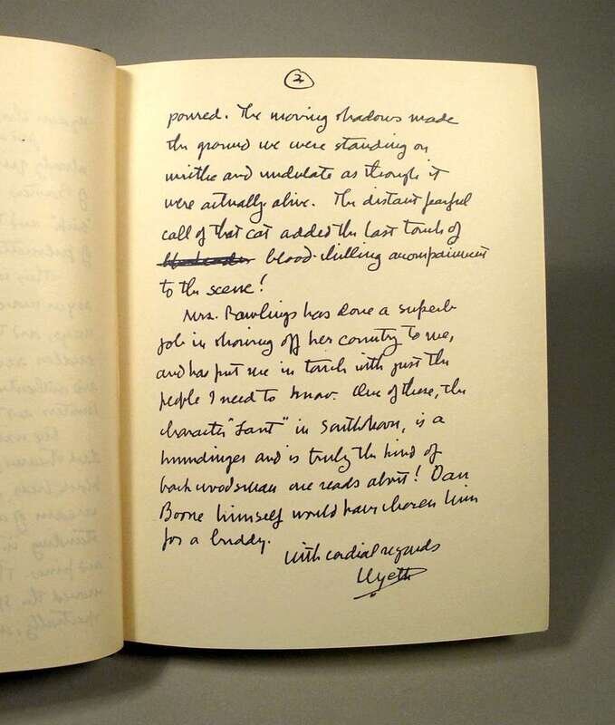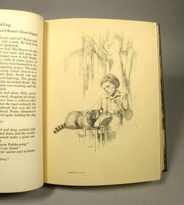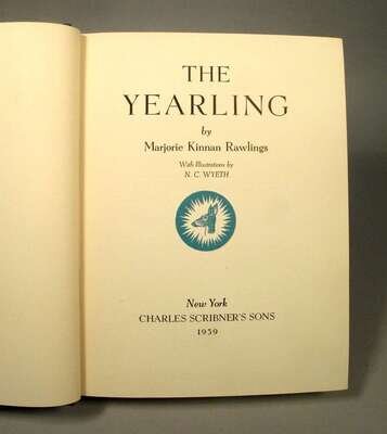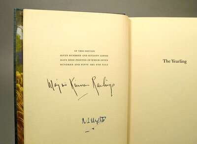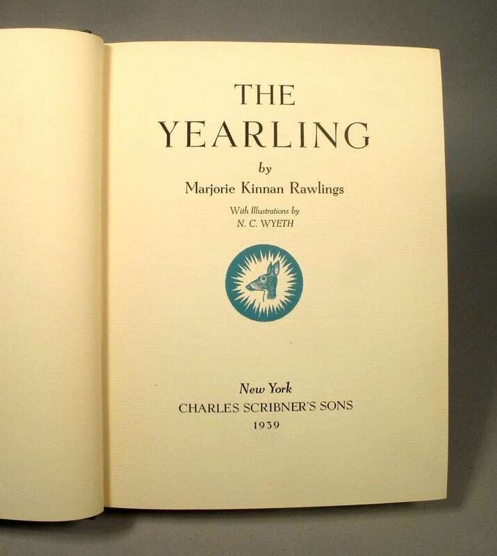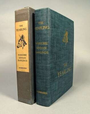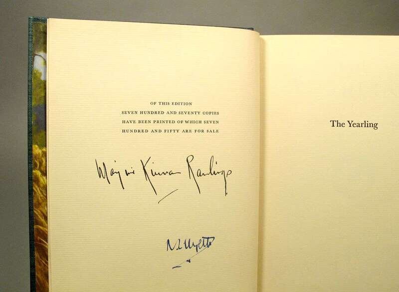 (Wyeth, N.C., illus.) Rawlings, Marjorie Kinnan. The Yearling. New York: Charles Scribner's, 1939. One of 770 copies signed by Majorie Kinnan Rawlings and N.C Wyeth. 4to, orig. gilt-lettered green cloth; minor wear, slipcase (edge wear and discoloration.) Internally generally clean. Former owner's bookplate to front paste down.