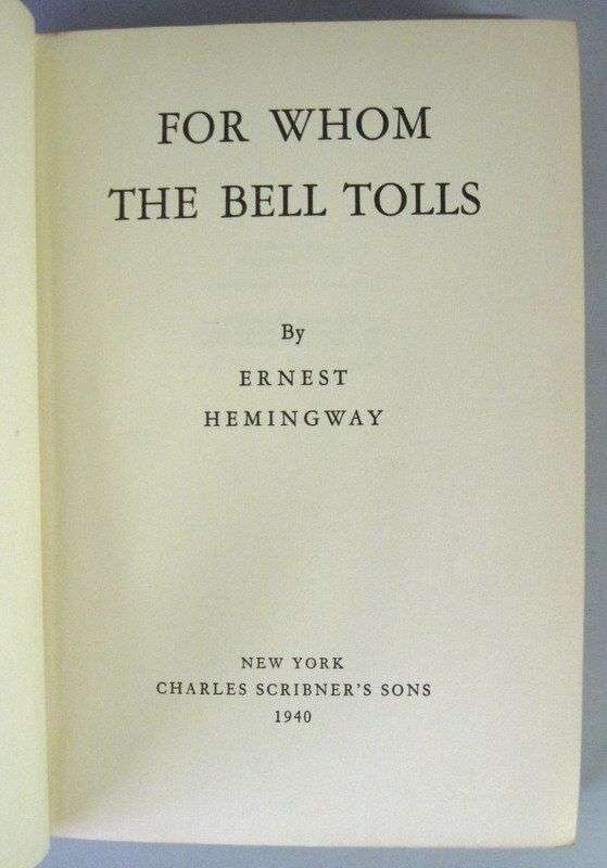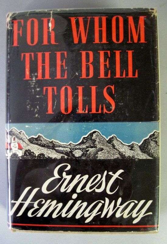 Hemingway, Ernest. For Whom the Bell Tolls. New York: Charles Scribner's, 1940. 1st ed. 8vo, orig. beige cloth, stamped in red & black; light edge wear, a little dusty, d/j (some chipping along edges with some loss of design at head & foot of spine.) Endpapers & ptg block edges starting to darken. Early state of d/j.
