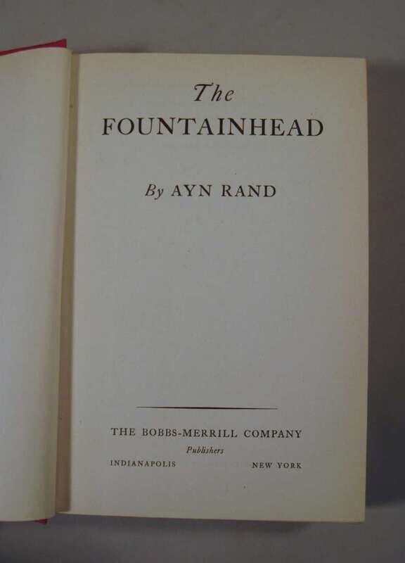 Rand, Ayn. The Fountainhead. Indianapolis: Bobbs-Merrill, (1943). 1st ed., 3rd ptg. 8vo, orig. gilt-lettered red cloth; top edge stained pink; light wear, d/j (some chipping at head of spine and top of front panels, minor loss to design elements.) VG+.