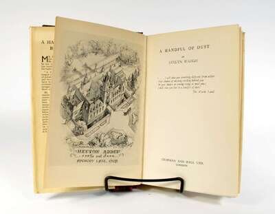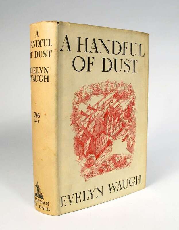 Waugh, Evelyn. A Handful of Dust. London: Chapmen & Hall, (1934). 1st ed. 8vo, orig. bds; light edge wear, very slightly cocked, d/j (light chipping to edges, very slightly dusty.) Frontis. Light spotting to endpapers & 1/2 title. Without the wrap-around band.