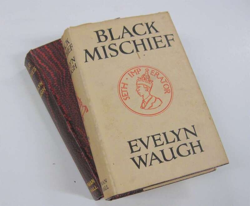 Waugh, Evelyn: Black Mischief. London: Chapman and Hall, (1932). 1st ed. 8vo, orig. bds; light wear, d/j (light edge wear, occasionally a little dusty, spine panel starting to darken.) Frontis. Map. Some spotting to top edge. * Vile Bodies. (London): Chapman & Hall, 1930. 1st ed. 8vo, orig. bds; light wear, slightly cocked. Lacking d/j.
