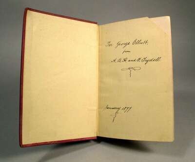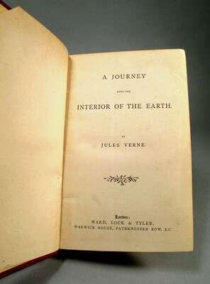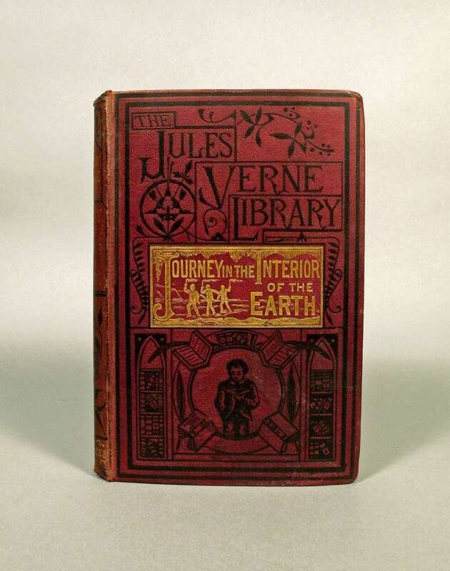 Verne, Jules. Journey in the Interior of the Earth. London: Ward Lock and Tyler, [c1876]. 1st ed. under this slightly different title. 8vo, orig. pub. gilt pictorial brown cloth; light edgewear, corners bumped. Previous owner's inscription on front free endpaper. Pub. catalogue at rear.