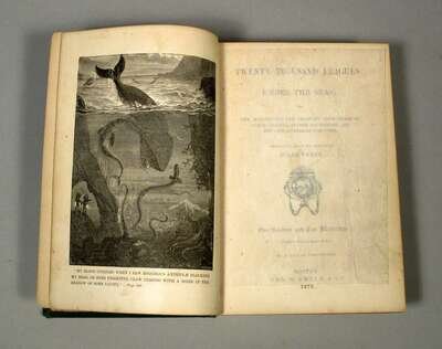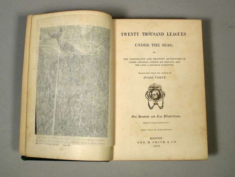 Verne, Jules: Twenty Thousand Leagues Under the Sea(s). Boston: Geo. M. Smith & Co., 1873. 2nd Amer. ed., later state - without 'The End' on p303. 8vo, gilt pictorial green cloth; spine head and foot lightly frayed, corners rubbed. With creasing to endpapers. Some scattered spotting.